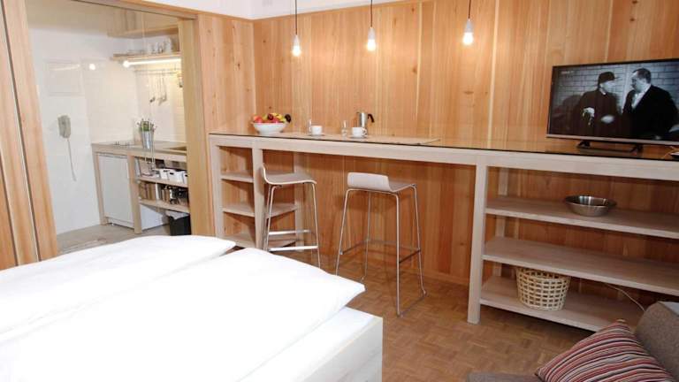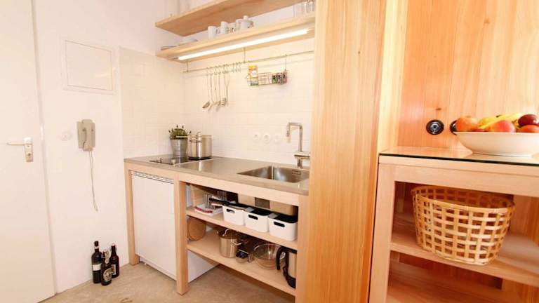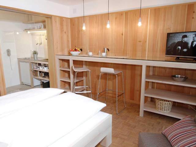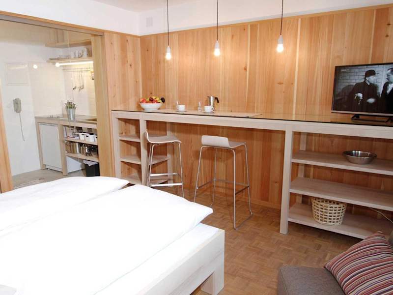 Die Ferienwohnung besteht aus einem Schlafzimmer, einer Küchenzeile, die mit einem Kühlschrank und einer Herdplatte ausgestattet ist, sowie einem Badezimmer mit Dusche und Badewanne. Zur Unterhaltung steht ein Flachbild-TV zur Verfügung.