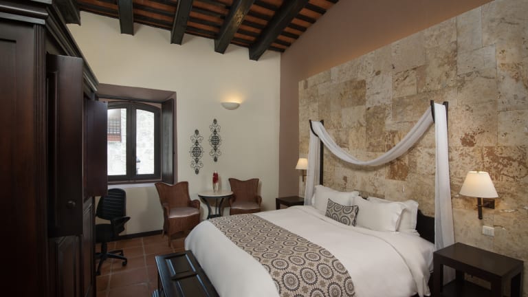 Das Hotel verfügt über 91 Zimmer, die wahlweise mit Blick auf das Don-Diego-Terminal und den Hafen von Sans Souci, das Ufer des Ozama-Flusses, die Gärten, den Swimmingpool, die Innenhöfe oder die berühmte Calle Las Damas gebucht werden können. Alle Zimmer bieten eine charmante Mischung aus historischer Eleganz und modernem Design. Ausstattung: Kostenloses WLAN, Klimaanlage, Safe (Laptop-Größe), Telefon, Haartrockner, Badezimmerartikel, Minibar und Kaffeemaschine. Zimmerkategorien: 27 Contemporary Rooms mit 1 QUEEN-Bett, separater Badewanne und Dusche, Blick auf das Don-Diego-Terminal und den Hafen von Sans Souci oder die Calle Las Damas. 19 Contemporary Rooms mit 2 TWIN-Betten, separater Badewanne und Dusche, Blick auf das Don-Diego-Terminal und den Hafen von Sans Souci oder die Gärten und Innenhöfe. 25 Colonial Rooms mit 1 QUEEN-Bett, Badezimmer mit Dusche, Blick auf die Calle Las Damas, Gärten, Innenhöfe, den Swimmingpool sowie das Don-Diego-Terminal und den Hafen von Sans Souci. Imperial Club – Exklusive Zimmer & Services: 5 Imperial Colonial Rooms mit 1 QUEEN-Bett, Badezimmer mit Dusche, Blick auf die Gärten, Innenhöfe, den Swimmingpool sowie das Don-Diego-Terminal und den Hafen von Sans Souci. 8 Imperial Deluxe Rooms mit 1 QUEEN-Bett (besonders großzügige Zimmer), Badezimmer mit Dusche, Blick auf die Calle Las Damas, Gärten und Patios. 2 Junior Suite Imperial mit 1 KING-Bett, einer Mischung aus kolonialem und modernem Stil, Badezimmer mit separater Dusche und Badewanne, Blick auf das Don-Diego-Terminal und den Hafen von Sans Souci, Gärten und Patios. 4 Imperial Suiten mit 1 KING-Bett, separatem Wohnbereich, einer Kombination aus kolonialem und modernem Stil, 2 Badezimmern (nur in zwei Suiten) mit separater Dusche und Badewanne, Blick auf das Don-Diego-Terminal und den Hafen von Sans Souci, den Swimmingpool, Gärten und Innenhöfe. 1 Suite Apartment mit 2 separaten Schlafzimmern, jeweils mit eigenem Badezimmer mit Dusche und separater Badewanne, Terrasse, Wohnbereich und voll ausgestatteter Küche.