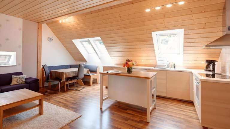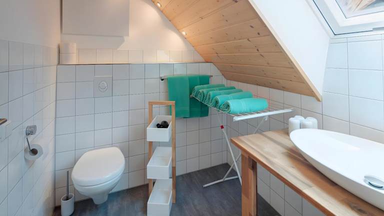 Die Ferienwohnung in Hof in Liebesdorf - Akelei ist ausgestattet mit drei Schlafzimmern, einer Küche, die unter anderem einen Kühlschrank und einen Geschirrspüler beinhaltet, einer Waschmaschine sowie einem Badezimmer mit Haartrockner. Handtücher und Bettwäsche werden bereitgestellt.
