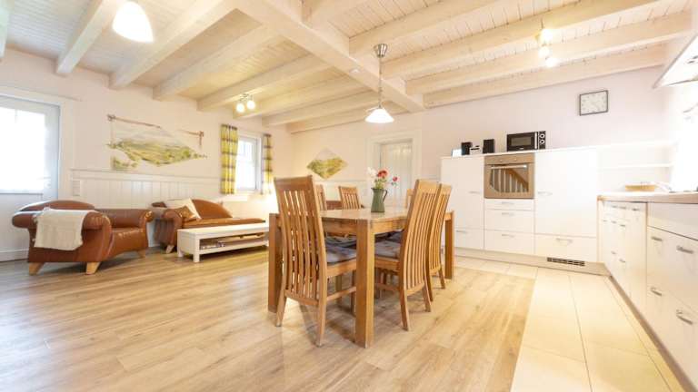 Eine voll ausgestattete Küche mit Kühlschrank und Geschirrspüler ist vorhanden, jedoch sind keine Details zu Verpflegungsangeboten angegeben.