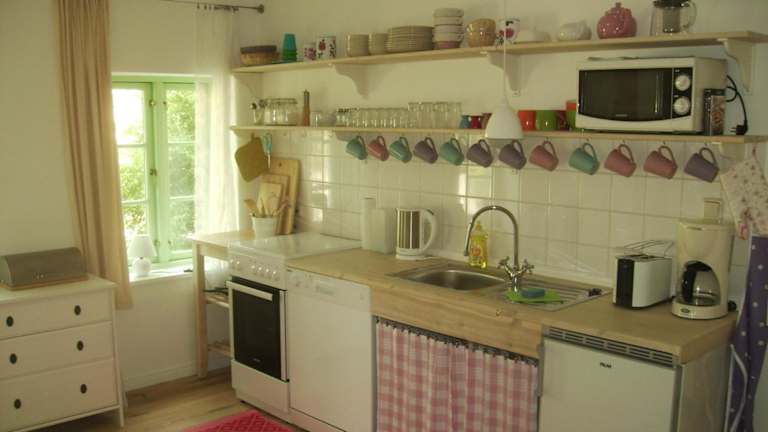 Die Apartments im Hof Rodenkrog sind liebevoll dekoriert und bieten viel Tageslicht sowie einen herrlichen Blick auf den Garten. Jedes Apartment verfügt über einen gemütlichen Sitzbereich mit einem TV und eine Terrasse, auf der Sie die frische Luft genießen können. Das eigene Badezimmer ist mit einer Dusche und einem Haartrockner ausgestattet. In der komplett eingerichteten Küche finden Sie einen Geschirrspüler und eine Mikrowelle vor, so dass Sie Ihre Mahlzeiten bequem selbst zubereiten können. Ein Esstisch steht ebenfalls zur Verfügung.