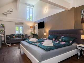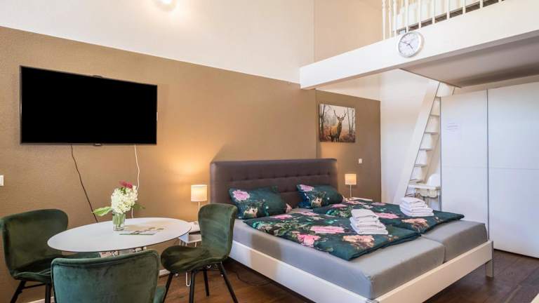 Das Hof zum Stadl - Ferienwohnung Nr 2 in Meckenbeuren ist die ideale Unterkunft für Reisende, die eine ruhige und komfortable Atmosphäre suchen. Das Apartment bietet eine gut ausgestattete Küche, kostenfreies WLAN und kostenfreie Privatparkplätze. Der Garten und der Kinderspielplatz sorgen für Entspannung und Unterhaltung. Die Nähe zu verschiedenen Bahnhöfen und dem Flughafen Friedrichshafen macht die Anreise einfach und bequem.
