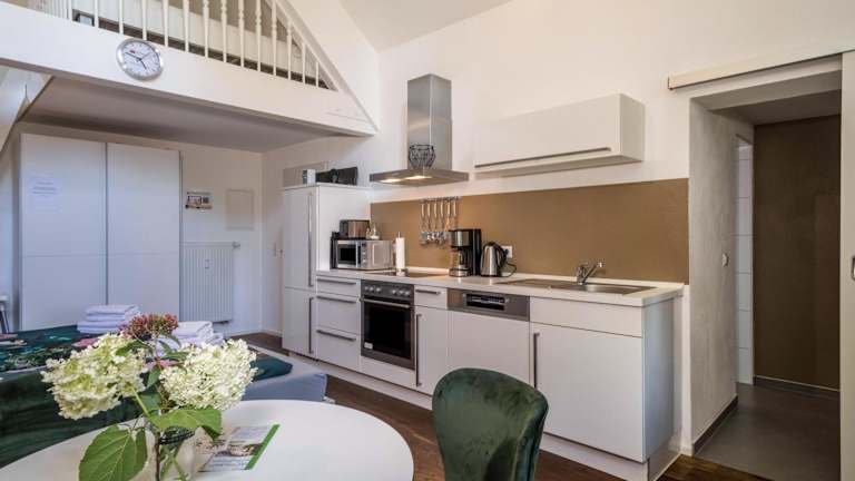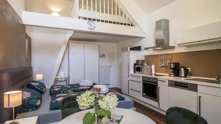 Das Apartment verfügt über eine gut ausgestattete Küche, in der Sie Ihre eigenen Mahlzeiten zubereiten können. Alternativ gibt es in der Nähe verschiedene Restaurants und Cafés, in denen Sie lokale und internationale Spezialitäten genießen können.