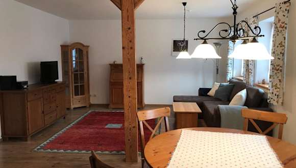 Das Apartment im Pferdehof-Dietzsch verfügt über ein Schlafzimmer und ein Wohnzimmer, die beide komfortabel und geschmackvoll eingerichtet sind. Die gut ausgestattete Küchenzeile bietet alles, was Sie für die Zubereitung Ihrer Mahlzeiten benötigen, einschließlich eines Kühlschranks und eines Backofens. Zur Unterhaltung stehen Ihnen ein TV, ein DVD-Player und ein CD-Player zur Verfügung. Die Terrasse lädt zum Entspannen und Genießen der frischen Luft ein.