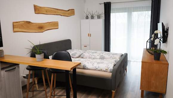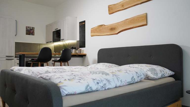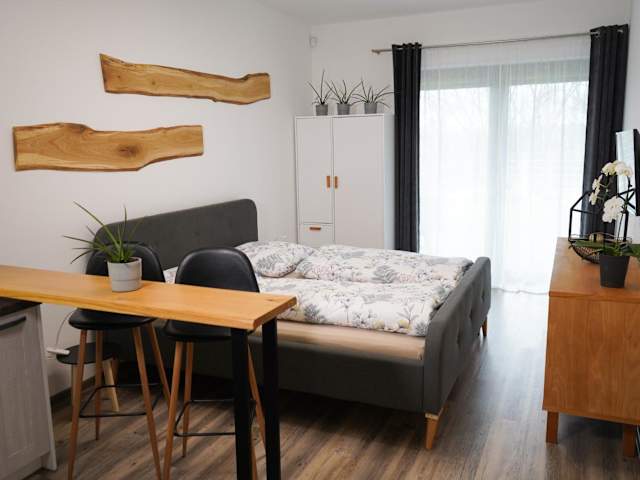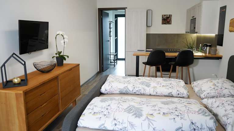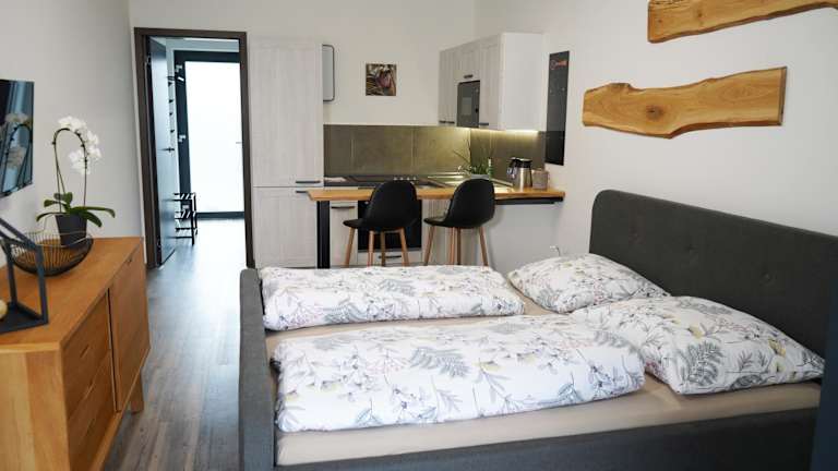 Das Hofmann Apartment bietet Übernachtungsmöglichkeiten mit verschiedenen Annehmlichkeiten, darunter kostenfreies WLAN und einen Flachbild-TV. Die Unterkunft ermöglicht einen Blick auf den Garten und verfügt über ein Schlafzimmer, eine voll ausgestattete Küche sowie ein Badezimmer.