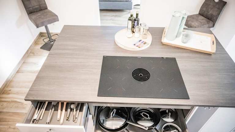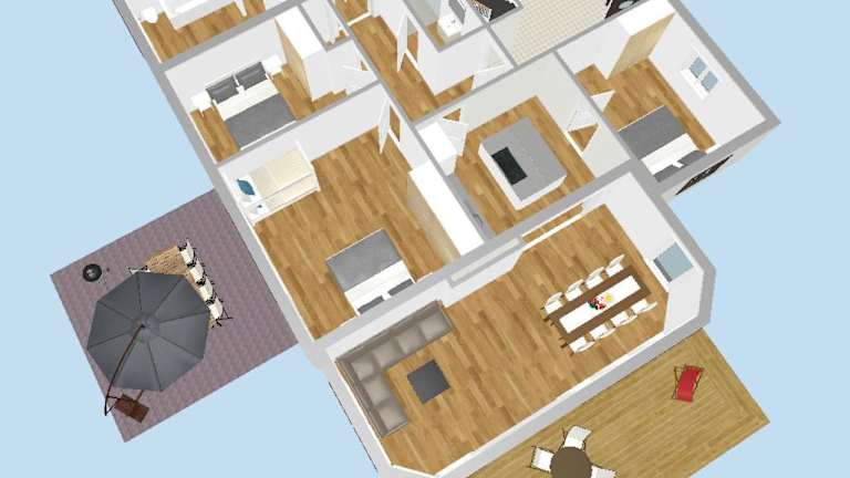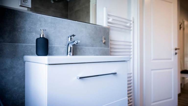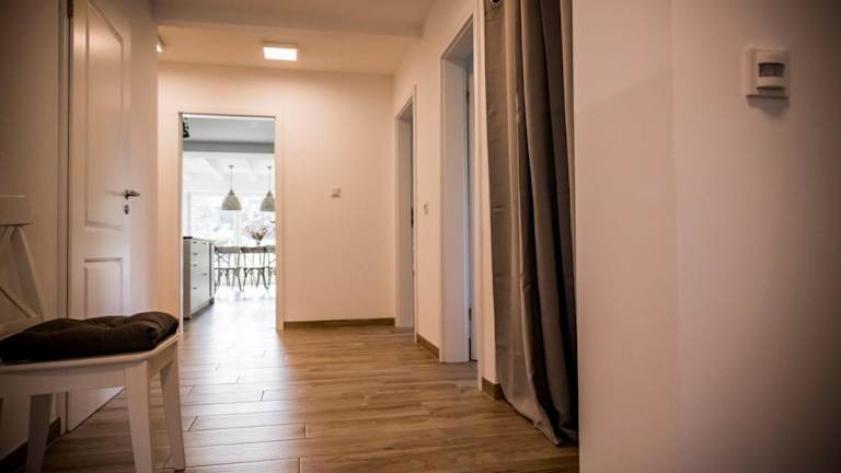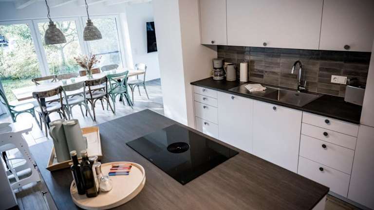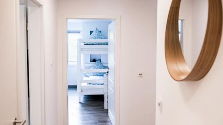 Die Ferienwohnung besteht aus drei Schlafzimmern, einem Wohnzimmer, einer voll ausgestatteten Küche mit Kühlschrank und Kaffeemaschine sowie drei Badezimmern, die mit Dusche und Haartrockner ausgestattet sind. Handtücher und Bettwäsche werden bereitgestellt.