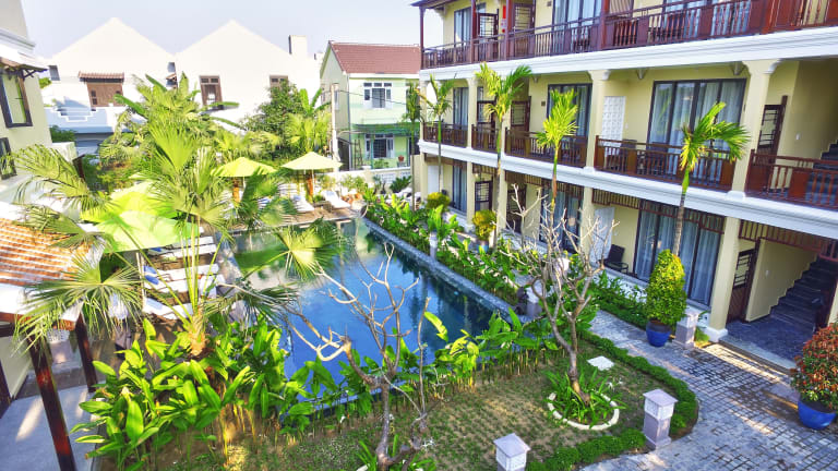 Das Hoi An Field Boutique Resort & Spa ist ein charmantes Hotel in Hoi An, das mit seinem einzigartigen Stil und seinen erstklassigen Annehmlichkeiten begeistert. Die Gäste können sich auf einen erholsamen Aufenthalt inmitten einer grünen Oase freuen. Das Resort bietet eine Vielzahl von Einrichtungen, darunter einen Außenpool, ein Fitnesscenter und ein Restaurant. Die Zimmer sind komfortabel eingerichtet und verfügen über Annehmlichkeiten wie Klimaanlage, Flachbild-TV und kostenloses WLAN. Genießen Sie auch das reichhaltige Frühstücksbuffet und erkunden Sie die umliegende Gegend mit den kostenlosen Fahrrädern des Hotels.