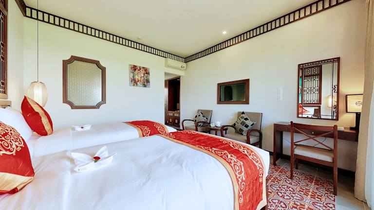 Die Zimmer im Hoi An Field Boutique Resort & Spa sind komfortabel und stilvoll eingerichtet und bieten den Gästen eine angenehme Atmosphäre für einen erholsamen Aufenthalt. Zur Ausstattung gehören Klimaanlage, Flachbild-TV, Safe und Minibar. Die Badezimmer sind geräumig und verfügen über eine Badewanne und eine Dusche. Einige Zimmer verfügen auch über einen Balkon oder eine Terrasse, von denen aus Sie die umliegende Natur genießen können.