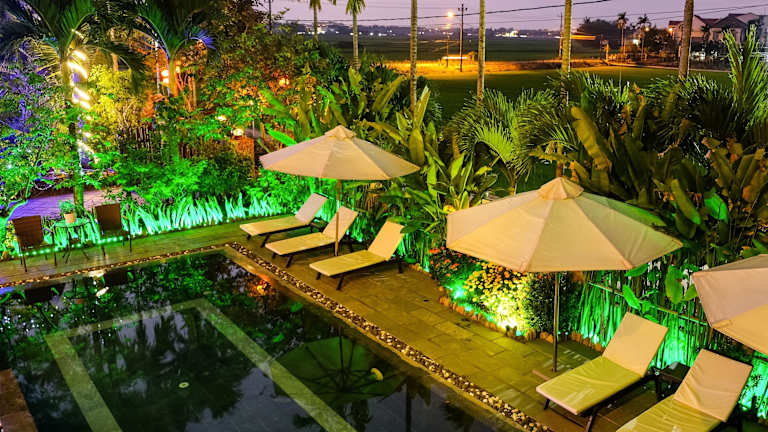 Das Hotel Hoi An Golden Rice Villa in Hoi An bietet seinen Gästen einen erholsamen Aufenthalt mit Blick auf die malerischen Reisfelder. Genießen Sie den Außenpool, die Sonnenterrasse und die Annehmlichkeiten wie das Restaurant und die Bar. Die Zimmer sind komfortabel eingerichtet und bieten teilweise einen herrlichen Ausblick auf den Pool, den Garten oder die Stadt. Kostenloses WLAN und ein eigenes Bad gehören zur Ausstattung. Nutzen Sie auch den eigenen Strand und die kostenlosen Leihfahrräder, um die Umgebung zu erkunden. Die zentrale Lage ermöglicht es Ihnen, die historischen Sehenswürdigkeiten von Hoi An zu besichtigen.