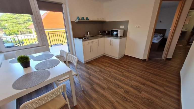 Die Zimmer im Holdudvar Apartman sind komfortabel und gut ausgestattet. Jede Wohneinheit verfügt über eine Terrasse mit Blick auf den Garten, wo die Gäste die Ruhe und Schönheit der Umgebung genießen können. Die Zimmer sind mit einem Flachbild-Sat-TV, einem Essbereich und einer gut ausgestatteten Küche ausgestattet. Jedes Zimmer verfügt auch über ein eigenes Badezimmer mit einer Dusche und einem Haartrockner. Eine Kaffeemaschine, ein Wasserkocher, ein Kühlschrank, eine Mikrowelle und ein Kochfeld stehen ebenfalls zur Verfügung.