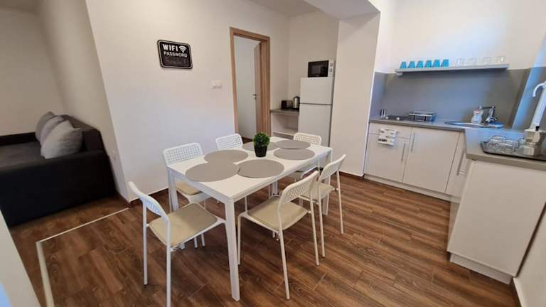 Das Holdudvar Apartman in Gyula bietet seinen Gästen eine komfortable Unterkunft in der Nähe der Burg von Gyula. Mit kostenfreiem WLAN, Grillmöglichkeiten, kostenlosen Fahrrädern und kostenfreien Privatparkplätzen ist das Hotel ideal für einen entspannten Aufenthalt. Jede Wohneinheit verfügt über eine Terrasse mit Blick auf den Garten, einen Flachbild-Sat-TV, einen Essbereich, eine gut ausgestattete Küche und ein eigenes Badezimmer. Die Gäste können Tischtennis spielen oder in der Umgebung wandern oder Rad fahren. Der Bahnhof Gyula ist nur 1,4 km entfernt und der internationale Flughafen Arad liegt 64 km entfernt.