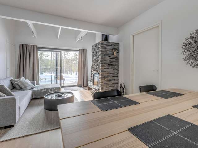 Das Suomu Chalet - two bedroom and loft for 8 bietet komfortable Unterkünfte mit einer gemütlichen Atmosphäre. Das Chalet verfügt über 3 Schlafzimmer, die genügend Platz für bis zu 8 Personen bieten. Die Küche ist gut ausgestattet mit einem Kühlschrank und einem Geschirrspüler, um Ihre Mahlzeiten bequem zuzubereiten. Der Flachbild-TV und der komfortable Sitzbereich laden zum Entspannen ein. Es gibt auch 2 Badezimmer mit Dusche für Ihre Bequemlichkeit. Handtücher und Bettwäsche werden gestellt, um Ihnen einen angenehmen Aufenthalt zu ermöglichen.