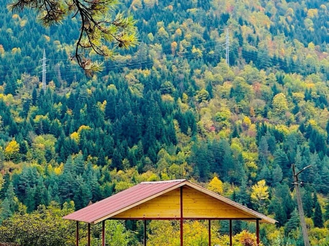 Die Unterkunft befindet sich in Bordschomi und bietet eine naturnahe Umgebung mit einem Garten und Terrasse.