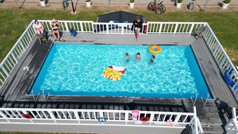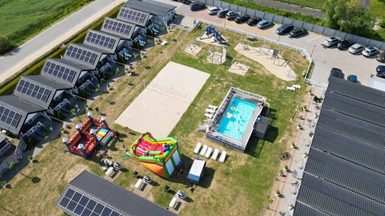 Das Holiday-Camp bietet verschiedene Freizeiteinrichtungen für alle Gäste. Neben dem saisonalen Außenpool können Sie auch kostenlose Fahrräder nutzen, um die Umgebung zu erkunden. Ein Kinderspielplatz sorgt dafür, dass auch die kleinen Gäste ihren Spaß haben.