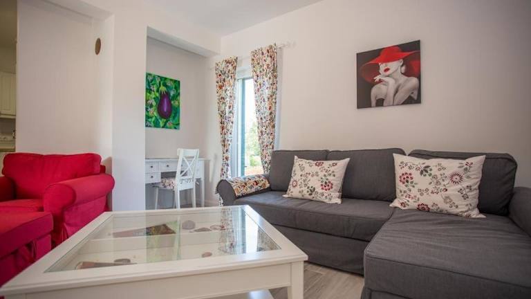 Das Ferienhaus mit Klimaanlage umfasst 2 Schlafzimmer, ein Wohnzimmer sowie eine voll ausgestattete Küche, die mit einem Kühlschrank und einer Kaffeemaschine ausgestattet ist. Es stehen 2 Badezimmer mit Dusche und Haartrockner zur Verfügung. Handtücher und Bettwäsche werden bereitgestellt.