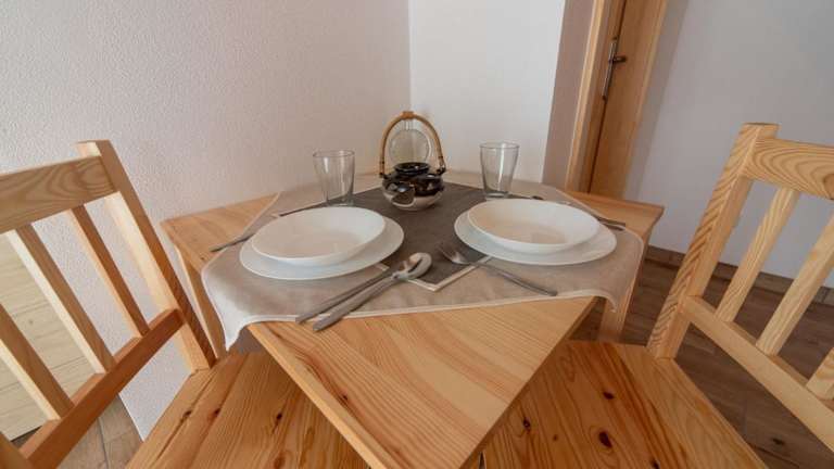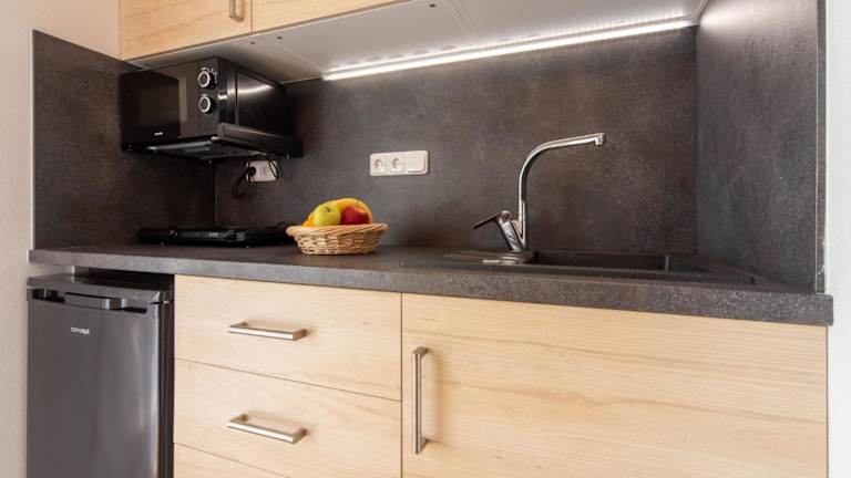Das Ferienhaus verfügt über ein Schlafzimmer, ein Wohnzimmer mit TV, eine voll ausgestattete Küchenzeile mit Kühlschrank und Mikrowelle sowie ein Badezimmer mit Dusche.