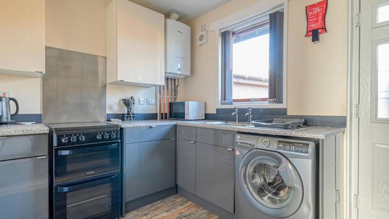 Das Ferienhaus umfasst zwei Schlafzimmer und eine voll ausgestattete Küche mit Kühlschrank und Ofen. Des Weiteren stehen ein Badezimmer mit Dusche, Haartrockner und Waschmaschine zur Verfügung. Die Unterkunft ist mit einem Fernseher ausgestattet und bietet eine Nichtraucherumgebung.