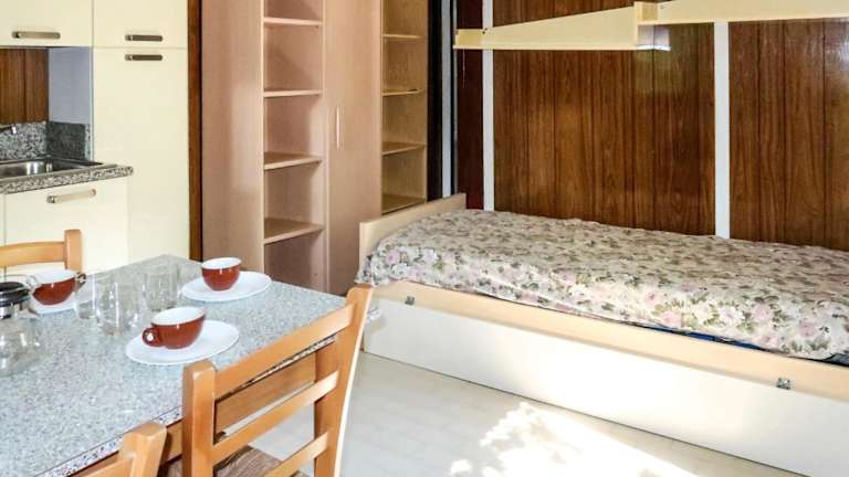 Das Ferienhaus verfügt über ein Schlafzimmer, ein Wohnzimmer mit einem TV, eine voll ausgestattete Küchenzeile mit Kühlschrank und ein Badezimmer mit Dusche.