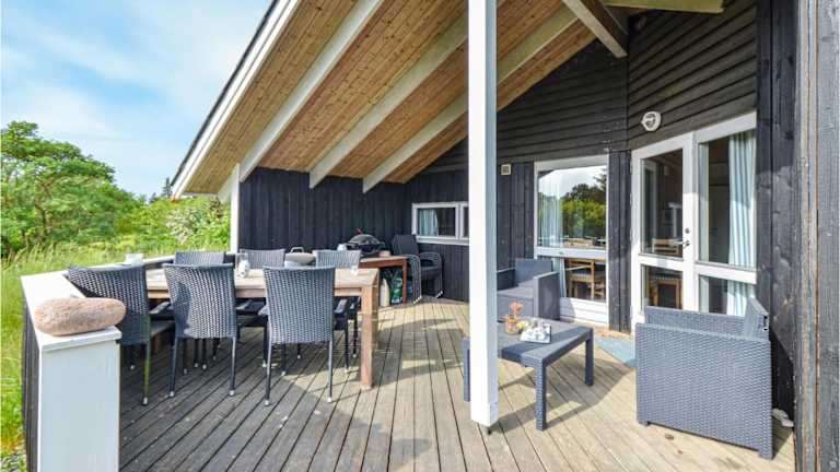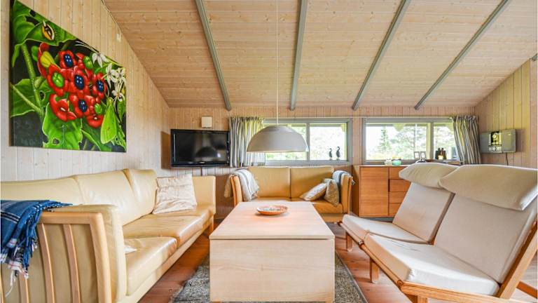 Holiday Home Gl Kirkebjerg Knebel Ii ist ein Ferienhaus mit Klimaanlage, das über eine voll ausgestattete Küche, 3 Schlafzimmer und ein Wohnzimmer verfügt. Die Unterkunft bietet Annehmlichkeiten wie einen Whirlpool und eine Sauna.