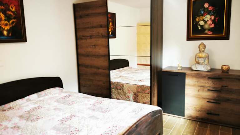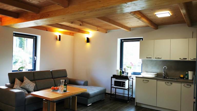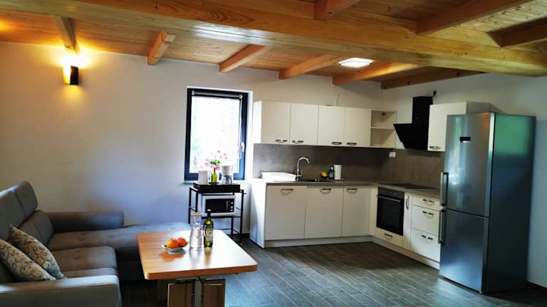 Das Apartment im Holiday Home - Goričko Park verfügt über ein gemütliches Schlafzimmer, in dem Sie sich nach einem Tag voller Aktivitäten entspannen können. Das großzügige Wohnzimmer lädt zum Verweilen ein und bietet einen schönen Blick auf den Garten. Die voll ausgestattete Küche bietet alles, was Sie benötigen, um Ihre Lieblingsgerichte zuzubereiten. Das Bad ist modern und verfügt über ein Bidet und eine Dusche. Handtücher und Bettwäsche werden gestellt, um Ihnen einen komfortablen Aufenthalt zu ermöglichen.