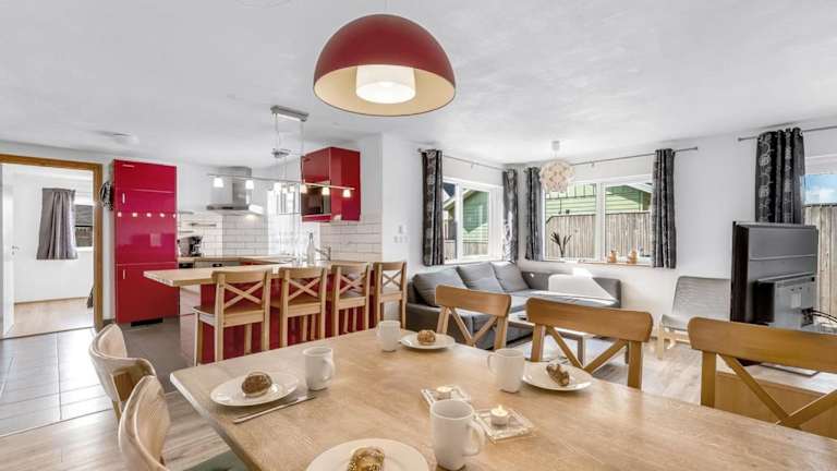 Da es sich um ein Ferienhaus handelt, haben Sie die Möglichkeit, Ihre eigenen Mahlzeiten zuzubereiten und die voll ausgestattete Küche zu nutzen. Alternativ können Sie auch die Restaurants und Cafés in der Umgebung erkunden und die lokale Küche genießen.