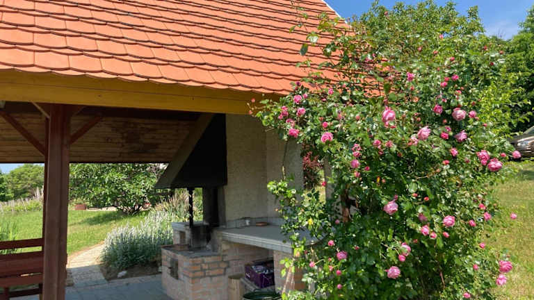 Das Dörgicsei Ház ist eine charmante Unterkunft mit Bergblick, die sich perfekt für einen erholsamen Urlaub eignet. Das Ferienhaus bietet geräumige Unterkünfte mit einem Balkon und einer gut ausgestatteten Küche. Die Nähe zur Burg Sümeg und der Abtei Tihany machen es zu einem idealen Ausgangspunkt, um die Umgebung zu erkunden. Mit einem Garten und kostenfreien Privatparkplätzen ist das Dörgicsei Ház eine komfortable Wahl für Ihren Aufenthalt.