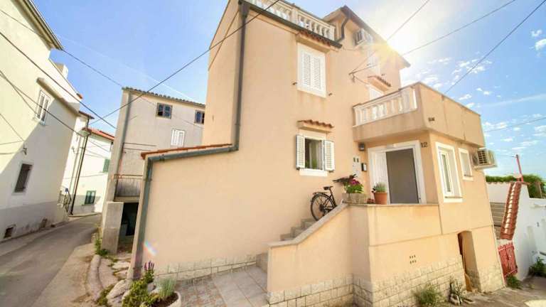Das Ferienhaus Holiday home in Vrbnik - Insel Krk 45797 bietet eine Ausstattung mit Klimaanlage, einem Garten und einer Terrasse. Es handelt sich um eine Nichtraucherunterkunft, in der keine Feiern wie Junggesellenabschiede gestattet sind. Die Unterkunft erfordert eine Zahlung per Überweisung vor der Anreise und bietet Privatparkplätze.