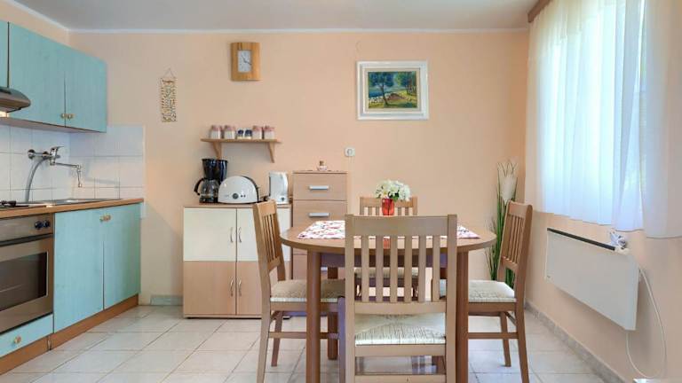 Das Ferienhaus bietet zwei Schlafzimmer, ein Badezimmer mit Dusche und einen Fernseher mit Satellitenkanälen. Es ist Platz für eine Babybett und ein zusätzliches Bett für eine kostenfreie Nutzung vorhanden. Bettwäsche, Handtücher und Wäsche werden gemäß den Richtlinien der örtlichen Behörden gewaschen.