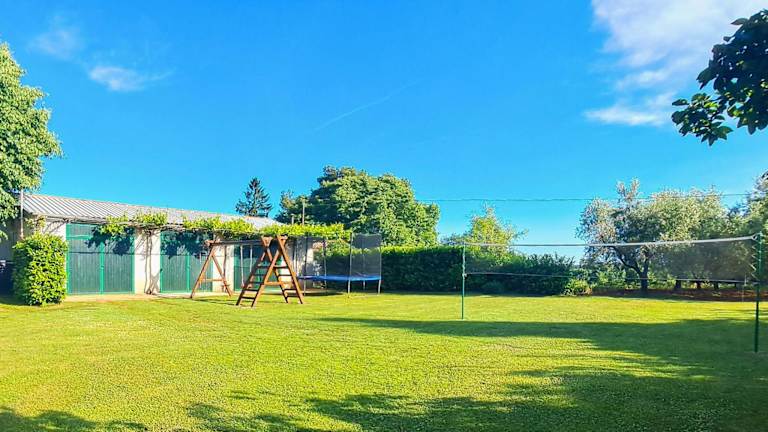 Die Unterkunft ist mit Badmintonzubehör ausgestattet und bietet den Gästen die Möglichkeit, im Außenpool zu entspannen. Der Garten ist mit Gartenmöbeln und einer Feuerstelle im Freien versehen.