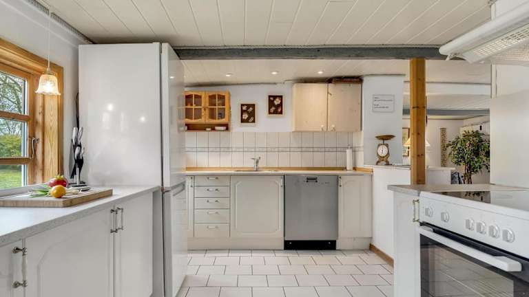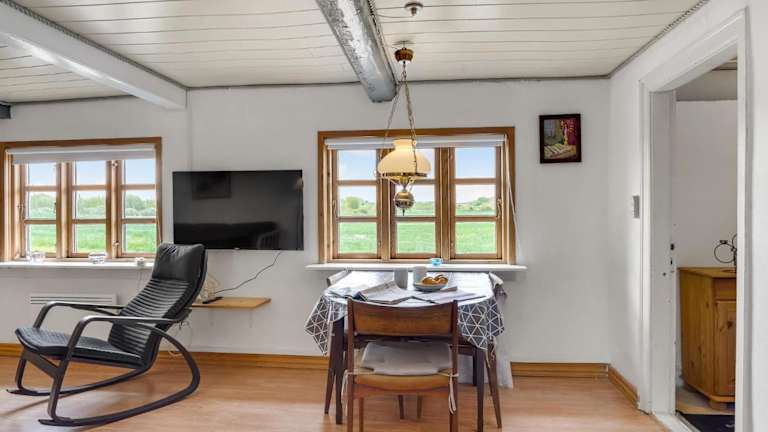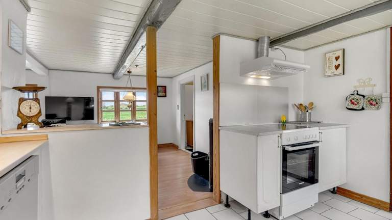 Das Ferienhaus umfasst zwei Schlafzimmer, ein Wohnzimmer und eine voll ausgestattete Küche mit Kühlschrank und Kaffeemaschine. Zudem gibt es ein Badezimmer mit Dusche.