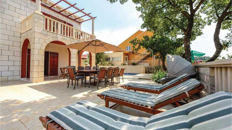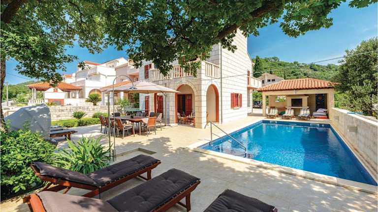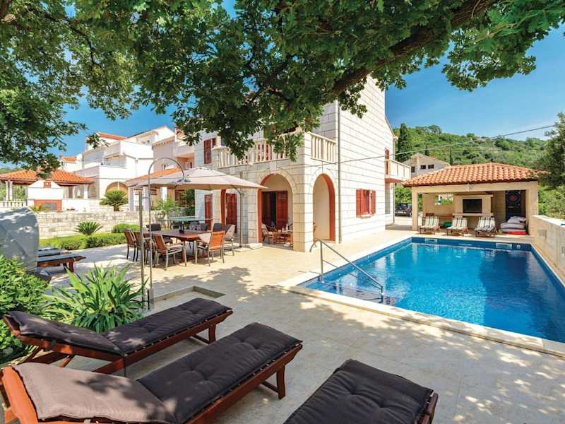 Das Holiday home Pinji VI in Zaton ist eine komfortable Unterkunft in der Region Dubrovnik-Neretva. Das Ferienhaus bietet fünf Schlafzimmer, ein geräumiges Wohnzimmer und eine voll ausgestattete Küche. Genießen Sie den Balkon, kostenfreies WLAN und den privaten Parkplatz. Die Unterkunft befindet sich in der Nähe des Strandes Soline und des Blu Beach. Entdecken Sie die Sehenswürdigkeiten von Dubrovnik, wie die Orlando Column, die nur eine kurze Fahrt entfernt sind. Der Flughafen Dubrovnik ist ebenfalls gut erreichbar.
