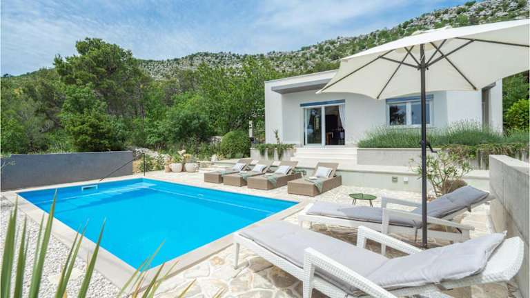 Holiday Home Put Svjure Croatia bietet einen Außenpool mit Meerblick und eine private Atmosphäre. Die Unterkunft verfügt über zwei Schlafzimmer, ein Wohnzimmer und zwei Badezimmer. Zu den Annehmlichkeiten zählen kostenlose Parkplätze und WLAN in der gesamten Unterkunft.