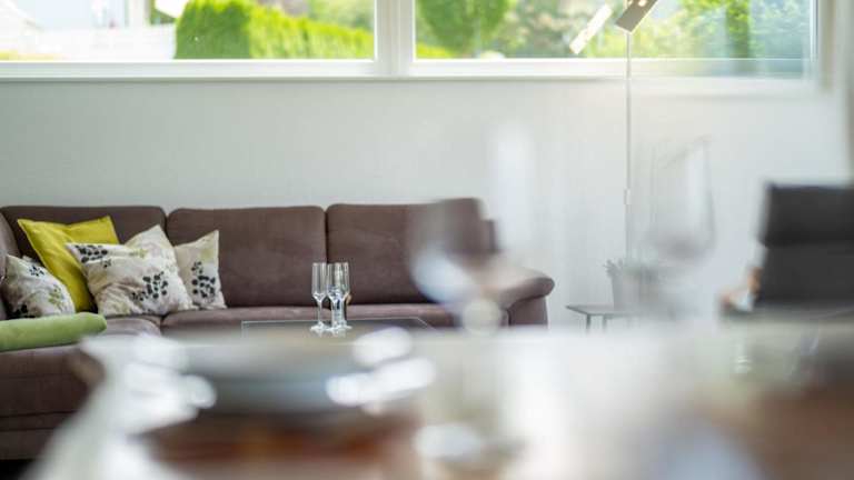 Das Ferienhaus verfügt über zwei Schlafzimmer, eine voll ausgestattete Küche mit Kühlschrank und Geschirrspüler, sowie ein Badezimmer mit Dusche, Haartrockner und Waschmaschine. Es werden Bettwäsche und Handtücher bereitgestellt.