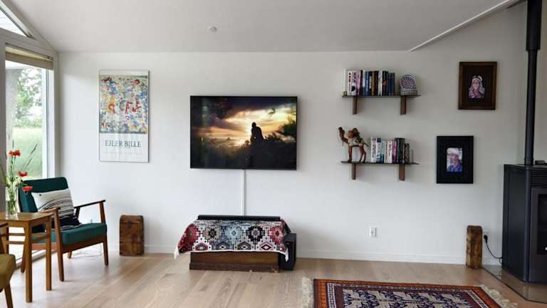 Das Ferienhaus verfügt über ein Wohnzimmer mit einem TV, eine voll ausgestattete Küche mit Kühlschrank und Geschirrspüler sowie zwei Badezimmer mit Dusche.
