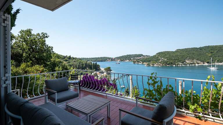 Die Unterkunft befindet sich in einer ruhigen Gegend mit Blick auf die Stadt, etwa 1,2 km vom Strand Štikovica entfernt. Die Strände Tri Brata und Solina sind ebenfalls in der Nähe, mit Entfernungen von 2,1 km bzw. 2,5 km. Der Flughafen Dubrovnik liegt 26 km entfernt, und es wird ein kostenpflichtiger Flughafentransfer angeboten.