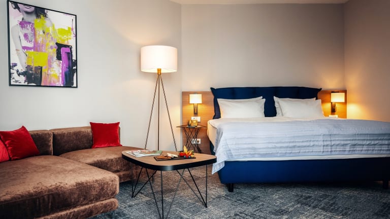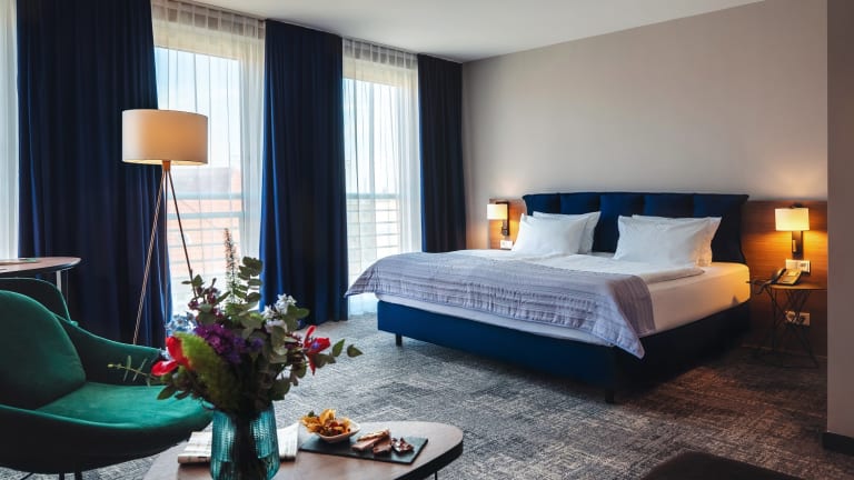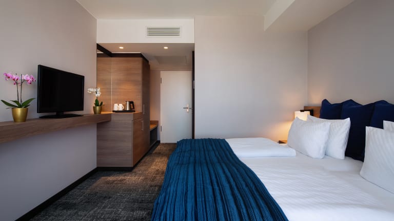 Jedes der 123 komfortabel eingerichteten, in vier verschiedenen Kategorien verfügbaren, Zimmer mit schallisolierten Fenstern ist mit individuell regelbarer Klimaanlage, Satellitenfernsehen, TV Bluetooth, kostenfreiem WLAN, Fön sowie einer Kaffee- und Teestation ausgestattet. Im gesamten Hotel steht Ihnen Wi-Fi (Highspeed Wireless-LAN) zur Verfügung und liefert die perfekte IT-Ausstattung für den mobilen Businessgast.