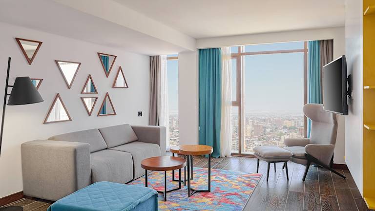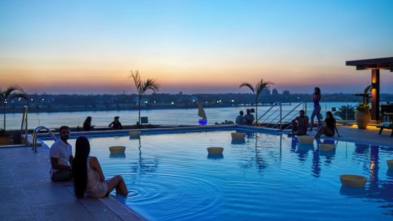 Das Hotel befindet sich in der Nähe des Stadtzentrums von Kairo und bietet einen schönen Blick auf den Nil sowie eine Panoramaaussicht auf die Pyramiden. Der internationale Flughafen von Kairo ist etwa 45 km entfernt, während das Stadtzentrum in ca. 15 km erreichbar ist.
