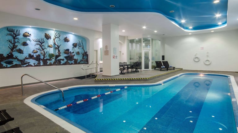 Das Hotel bietet Innen- und Außenpools, die sich ideal für sportliche Aktivitäten und Entspannung eignen. Die Gäste können auch Tennis spielen, das Fitnessstudio nutzen oder eine Partie Billard spielen. Es werden auch Aerobic-Kurse angeboten.