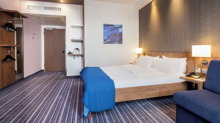 Jedes Zimmer im Holiday Inn Express Friedrichshafen bietet modernen Komfort mit kostenlosen Annehmlichkeiten wie WLAN, Klimaanlage und TV. Die eigenen Badezimmer sind mit Duschen und einem Haartrockner ausgestattet. Die Zimmer bieten den Gästen einen angenehmen Rückzugsort nach einem langen Tag.