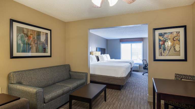 Die Unterkunft Holiday Inn Express Gas City by IHG bietet 70 Zimmer und ist über einen Aufzug zugänglich. Es stehen behindertengerechte Einrichtungen zur Verfügung. Eine freundliche Rezeption ist rund um die Uhr besetzt, und Wertgegenstände können sicher in einem Hotelsafe aufbewahrt werden. WLAN ist in den öffentlichen Bereichen verfügbar, und es gibt verschiedene Einkaufsmöglichkeiten vor Ort. Parkplätze sind sowohl in einer Garage (gegen Gebühr) als auch kostenlos auf dem Gelände verfügbar. Zusätzlich werden Autovermietung, Zimmerservice, Wäscheservice und eine Münzwäscherei angeboten. Für Geschäftsreisende steht ein Business-Center mit faxtechnischen Anlagen zur Verfügung.