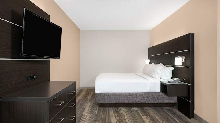 Die Zimmer im Holiday Inn Express Hillsville sind hell und komfortabel eingerichtet. Jedes Zimmer verfügt über Kabel-TV, eine Kaffeemaschine, einen Haartrockner und einen bequemen Sessel sowie einen Schreibtisch. Eine Mikrowelle und ein Kühlschrank sind ebenfalls vorhanden, um den Gästen größtmöglichen Komfort zu bieten.