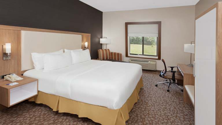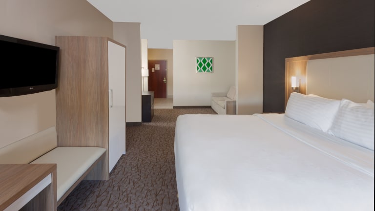 Jedes Zimmer im Holiday Inn Express Hotel & Suites Brookville ist komfortabel und gut ausgestattet. Die Zimmer verfügen über Annehmlichkeiten wie eine Kaffeemaschine, eine Mikrowelle und einen Mini-Kühlschrank, die den Gästen Flexibilität und Bequemlichkeit bieten. Kabel-TV mit Premium-Kabelkanälen und ein Schreibtisch sind ebenfalls vorhanden, um den Gästen ein angenehmes Arbeits- oder Unterhaltungserlebnis zu bieten.