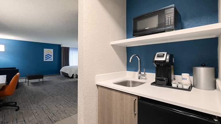 Die Zimmer im Holiday Inn Express Hotel & Suites Ft. Lauderdale-Plantation sind in warmen Rottönen gehalten und bieten eine gemütliche und einladende Atmosphäre. Zur Ausstattung gehören Kabel-TV, kostenloses WLAN, ein Schreibtisch, ein Bügeleisen, ein kleiner Kühlschrank und eine Kaffeemaschine.