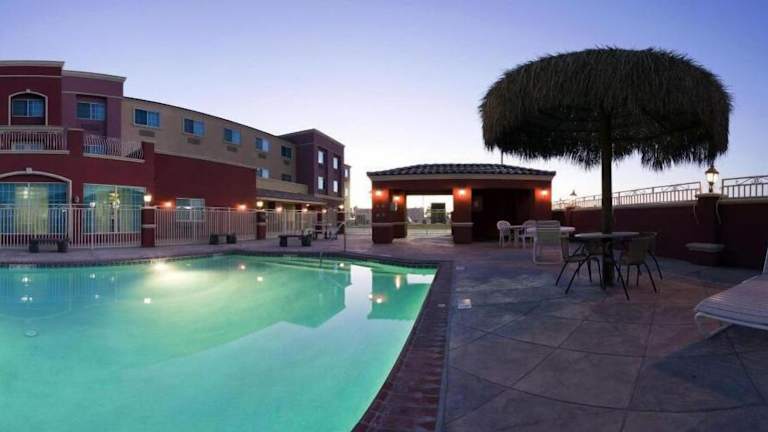 Das Holiday Inn Express Hotel & Suites El Centro verfügt über einen Außenpool, in dem Sie sich erfrischen können. Es gibt auch einen Whirlpool, in dem Sie sich entspannen können. Für diejenigen, die fit bleiben möchten, steht ein kleines Fitnessstudio zur Verfügung. Wäschemöglichkeiten sind ebenfalls vorhanden, um Ihren Aufenthalt so angenehm wie möglich zu gestalten.