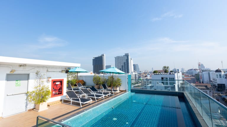 Das Hotel liegt in Pattaya, nur 1 km vom Strand entfernt. Die Umgebung bietet zahlreiche Möglichkeiten zur Freizeitgestaltung, darunter Wassersport, Einkaufsmöglichkeiten und Restaurants. Der Bahnhof ist ca. 4 km entfernt und das Stadtzentrum von Pattaya erreichen Sie bequem zu Fuß.
