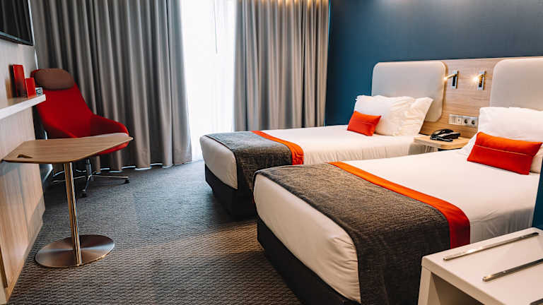 Das Holiday Inn Express Porto City Centre bietet moderne und funktionale Zimmer, ideal für Reisende, die Komfort und Bequemlichkeit im Zentrum von Porto suchen. ️ Zimmertypen Das Hotel verfügt über 105 Zimmer mit unterschiedlicher Ausstattung: Standardzimmer mit 1 Doppelbett: ca. 15 m², bietet Platz für bis zu 2 Personen. Standardzimmer mit 2 Einzelbetten: ca. 16 m², ideal für 2 Gäste. Standardzimmer mit 1 Doppelbett und Schlafsofa: ca. 18 m², bietet Platz für bis zu 3 Personen. Standard-Mehrbettzimmer: ca. 16 m², mit 2 Einzelbetten und 1 Schlafsofa, bietet Platz für bis zu 3 Personen. Standardzimmer für Personen mit eingeschränkter Mobilität