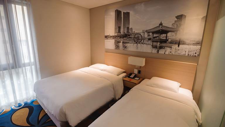 Das Travelodge Myeongdong Euljiro in Seoul bietet eine ausgezeichnete Unterkunft für Reisende, die die Stadt erkunden möchten. Mit seinem Highspeed-WLAN und dem rund um die Uhr verfügbaren Support sind Sie immer bestens vernetzt und finden sich problemlos in der lebendigen Metropole zurecht. Die zentrale Lage ermöglicht es Ihnen, die öffentlichen Verkehrsmittel bequem zu erreichen und Seouls erstklassiges Einkaufsviertel sowie das berühmte Streetfood-Paradies in Myeongdong zu Fuß zu erkunden. Die Zimmer sind modern und minimalistisch gestaltet und bieten mit kreativen Wandmalereien einen ruhigen Rückzugsort. Das Hotel verfügt außerdem über Annehmlichkeiten wie einen Selbstbedienungswaschsalon, ein Parksystem und einen Gemeinschaftsraum.
