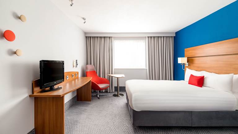 Die Zimmer im Holiday Inn Express Shrewsbury sind groß und zeitgenössisch eingerichtet. Sie verfügen über eine Klimaanlage, ein Super-Kingsize-Bett und eine luxuriöse Dusche. Zur weiteren Ausstattung gehören WLAN, ein Schreibtisch und ein Sofabett. Es stehen auch rollstuhlgerechte Zimmer zur Verfügung.