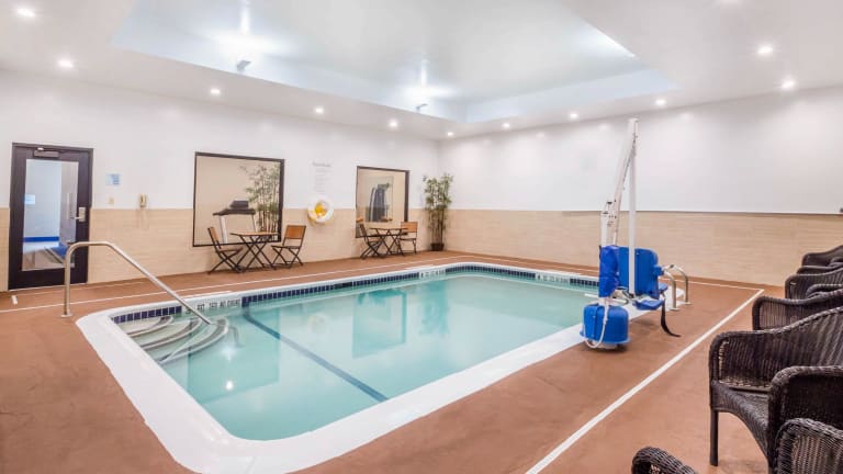 Das Holiday Inn Express & Suites Albany Airport - Wolf Road bietet insgesamt 130 Zimmer und verfügt über verschiedene Einrichtungen, die den Aufenthalt angenehm gestalten. Dazu gehören ein Aufzug, eine Gepäckaufbewahrung, ein Safe, ein Geldautomat sowie ein Getränkeautomat. Zusätzlich sorgt ein Kamin für eine behagliche Atmosphäre. Das Hotel bietet behindertengerechte Einrichtungen und einen Garten zur Erholung. Die Rezeption ist 24 Stunden besetzt und das freundliche Personal steht den Gästen bei Fragen zur Verfügung.