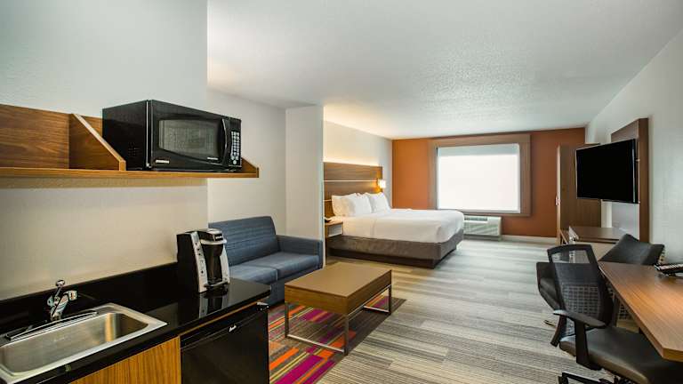 Das Holiday Inn Express Hotel & Suites Bellevue verfügt über insgesamt 87 Zimmer und ist mit einem Aufzug ausgestattet. Zu den Serviceleistungen zählen ein 24-Stunden-Sicherheitsdienst, Zimmerservice, Wäscheservice und eine Münzwäscherei. Das Hotel bietet behindertengerechte Annehmlichkeiten und einen Geschäftsbereich. Parkmöglichkeiten sind sowohl in einer Garage (gegen Gebühr) als auch auf einem kostenlosen Parkplatz vorhanden. Ein Zeitungskiosk und ein TV-Raum stehen den Gästen zur Verfügung. WLAN ist in den öffentlichen Bereichen verfügbar.